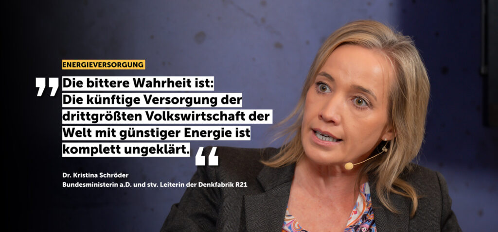 Kristina Schröder ist stellvertretende Leiterin der Denkfabrik R21 und arbeitet als selbständige Unternehmensberaterin, Publizistin und Kolumnistin bei der Tageszeitung WELT. Von 2002 bis 2017 war die Christdemokratin Mitglied des Deutschen Bundestages. Neben ihrem Mandat schrieb sie ihre Dissertation bei dem Mainzer Politikwissenschaftler Jürgen W. Falter zum Unterschied zwischen Gleichheit und Gerechtigkeit. Von 2009 bis 2013 war sie Bundesministerin für Familie, Senioren, Frauen und Jugend. „Danke, emanzipiert sind wir selber. Abschied vom Diktat der Rollenbilder“ lautete der Titel ihrer 2012 erschienenen Streitschrift, in der sie für eine Politik der Wahlfreiheit und des Respekt des Staates gegenüber privaten Lebensentwürfen von Frauen und Familien plädiert. Im September 2021 veröffentlichte Kristina Schröder die Essaysammlung "FreiSinnig. Politische Notizen zur Lage der Zukunft". Schröder engagiert sich ehrenamtlich in der schulischen Elternarbeit und als Botschafterin der Initiative Neue soziale Marktwirtschaft.